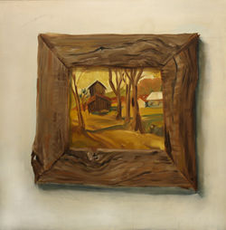 ![]() "In which I fantasize that I am smoking cigars with Picasso in Gertrude Stein's french parlor", oil on canvas, 48"x48" | ![]() "In Honor of Sri Daya Mata", oil on canvas, 48"x48", 2014. |